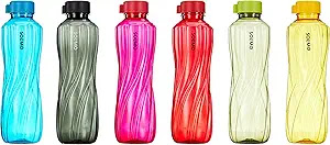 Product Description = The Amazon Brand - Solimo 1000 ml Plastic Water Bottle set of 6 in multi-color is a convenient and stylish solution for staying hydrated on the go. This set of water bottles is designed to cater to the modern lifestyle, offering practicality and durability in a vibrant and colorful package. Each water bottle in the set has a capacity of 1000 ml, making it suitable for carrying an ample amount of water or any preferred beverage. This generous capacity reduces the need for frequent refills, making it an ideal choice for individuals with active lifestyles, as well as for families and groups. The bottles are made of high-quality plastic, which is known for its lightweight and durable nature. This ensures that the bottles are easy to carry around while also being resilient to accidental drops and impacts, making them suitable for various activities such as sports, travel, and everyday use. The use of plastic also makes the bottles easy to clean and maintain, adding to their convenience and practicality. One of the standout features of this set is the multi-color design, which adds a fun and vibrant element to the bottles. The assortment of colors not only makes it easy to differentiate between multiple bottles but also adds a touch of personalization and style to the user's hydration routine. This makes the set an attractive option for those who appreciate a bit of flair in their accessories. The set of 6 bottles offers versatility, allowing users to have multiple bottles on hand for different purposes. Whether it's for individual use, sharing with family members, or hosting gatherings, having a set of 6 bottles ensures that there are plenty of options available for staying hydrated in various settings. In addition to the practical aspects, the Solimo water bottles prioritize user safety and environmental consciousness. The bottles are designed to be free from harmful chemicals such as BPA, ensuring that the beverages stored in them remain uncontaminated. This feature provides peace of mind to users, especially those who are mindful of their health and well-being. Furthermore, the use of reusable water bottles promotes sustainability by reducing the reliance on single-use plastic bottles. By choosing a durable and reusable option like the Solimo water bottles, users contribute to the reduction of plastic waste, aligning with eco-friendly practices and environmental conservation efforts. The Amazon Brand - Solimo 1000 ml Plastic Water Bottle set of 6 in multi-color exemplifies a balance of functionality, style, and sustainability. It caters to the diverse needs of individuals and families, offering a reliable and visually