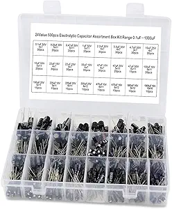 Product Description = The REES52 24Value 500pcs Electrolytic Capacitor Assortment Box Kit is a comprehensive collection of electrolytic capacitors designed to cater to a wide range of electronic projects and applications. With 24 different capacitance values ranging from 0.1uF to 1000uF, this kit provides hobbyists, DIY enthusiasts, and professionals with a versatile selection of capacitors to meet their specific needs. Electrolytic capacitors are essential components in electronic circuits, commonly used for filtering, coupling, decoupling, and energy storage purposes. They are characterized by their high capacitance values and polarized nature, making them ideal for applications requiring large amounts of charge storage and voltage regulation. One of the key advantages of the REES52 capacitor assortment kit is its extensive range of capacitance values. With 24 different values to choose from, ranging from 0.1uF to 1000uF, users have access to a wide variety of options to suit their project requirements. Whether you're working on low-power circuits that require small capacitance values for signal coupling or high-power applications that demand larger capacitance values for power supply filtering, this kit has you covered. Furthermore, the inclusion of 500 capacitors in total ensures that users have an ample supply of capacitors on hand for multiple projects or prototyping needs. This abundance of capacitors reduces the need for frequent restocking and ensures that users can quickly access the capacitance values they require without delay. The capacitors in the REES52 assortment kit are conveniently organized and stored in a compact and durable storage box. This box features individual compartments for each capacitance value, making it easy to locate and retrieve the desired capacitor when needed. The organized layout helps to prevent misplacement or damage to the capacitors, ensuring that they remain in pristine condition for extended periods. In addition to their comprehensive range of capacitance values, the electrolytic capacitors in this kit are also characterized by their high-quality construction and reliable performance. Manufactured from premium materials and subjected to rigorous quality control standards, these capacitors deliver consistent and stable performance across a wide range of operating conditions. Moreover, the capacitors feature polarized construction, with clearly marked positive and negative terminals to ensure correct orientation during installation. This polarity marking helps prevent damage to the capacitors and associated circuitry, ensuring reliable operation and longevity. Overall, the REES52 24Value 500pcs Electrolytic Capacitor Assortment Box Kit offers exceptional value and versatility for electronic enthusiasts and professionals alike. With its extensive range of capacitance values, durable storage box, and reliable performance, this kit is an indispensable resource for anyone working on electronic projects, repairs, or prototyping activities. Whether you're a hobbyist tinkering with DIY electronics or a seasoned professional designing complex circuits, this capacitor assortment kit provides the essential components you need to bring your ideas to life.