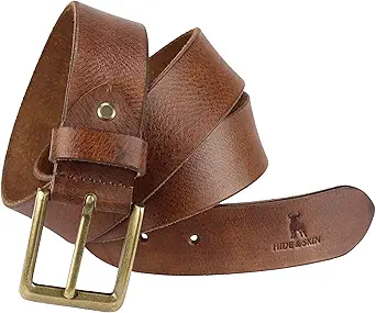 Product Description = We at HIDE & SKIN are a team of leather aficionados determined to make high-quality premium leather products that are hand-made with passion. We strive to make sure that our products boast elegance and authenticity without compromising on paragon dimensions. To serve our customer's best interests, we only use 100% Genuine Leather imported from different parts of the world and processed in-house in our Tannery from Raw Hides to finished leather sheets. The finished sheets are then hand-crafted into the final products by our passionate craftsmen using robust stitchery. IDE & SKIN's exquisite leather belts are handmade by expert artisans using beautiful Full Grain Leather, adding a touch of class to your jeans, dress, or everyday pants. This belt is made with quality leather that ensures durability.