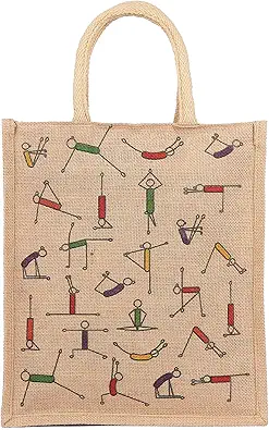 Product Title = Jute Yoga print | yoga print | Wedding Gift Clutch Bag | Party Bag Party Fashion Bags Gift for her Gift Item Jute Bag, Red and White, S