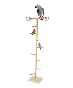 Product Title = KSK Birds Playground,Wood Perch Gym Stand Training Step Ladder Perch with 2 Feeder Cups Exercise Toys for Cockatiels Lovebird Parakeets Parrots Conure Finches (KSKWBTS005, 48 INCH)