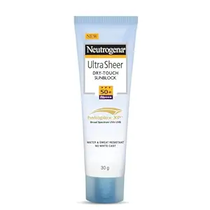 Product Title = Neutrogena Ultra Sheer Sunscreen SPF 50+ | Broad Spectrum UVA/UVB | Blue light protect | No White Cast | Water resistant, Ultra light & Non sticky | Oily, Dry & Sensitive Skin | 30 g (Pack of 1)